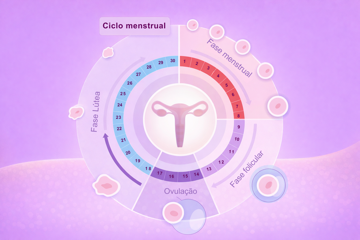 Testes de ovulação, testes de gravidez, educação sobre o ciclo menstrual e fertilidade feminina